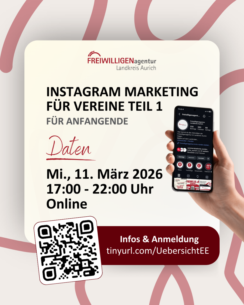 Instagram ist auch für Vereine eine äußerst leistungsstarke Plattform, um die eigene Reichweite zu erhöhen und neue Mitglieder zu gewinnen. In diesem Online-Live-Kurs erfahren Sie, wie Sie Instagram erfolgreich als Marketinginstrument für Ihren Verein nutzen können – von der Einrichtung eines Profils bis hin zur Erstellung ansprechender Beiträge, die Ihre Vereinsarbeit ins rechte Licht rücken.