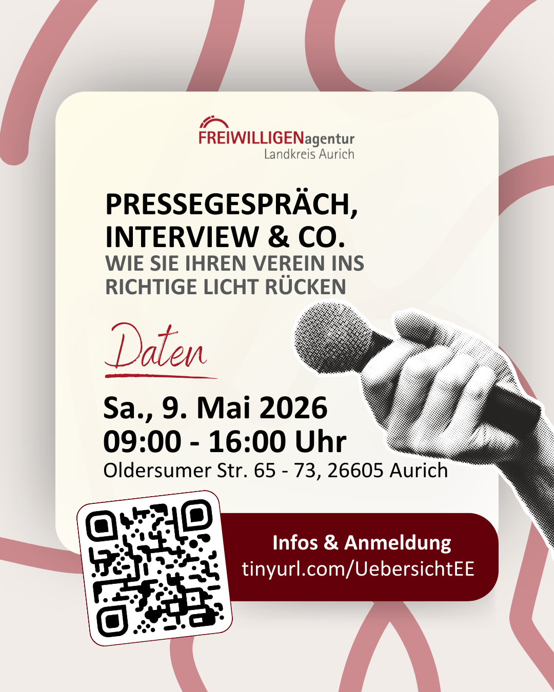 Ob bei einem Pressegespräch, einem Interview oder einer Konferenz – wer im Namen eines Vereins spricht, steht stellvertretend für alle Engagierten. Ein gelungener Auftritt kann Türen öffnen, Vertrauen schaffen und neue Mitglieder oder Unterstützer gewinnen. In diesem praxisnahen Workshop erfahren Sie, wie Sie Ihren Verein in den Medien wirkungsvoll und authentisch präsentieren. Sie lernen, wie Sie sich gezielt auf Pressegespräche vorbereiten, welche Informationen Journalistinnen und Journalisten wirklich brauchen und wie Sie mit klaren Kernbotschaften überzeugen. Neben hilfreichen Tipps zu Körpersprache, Stimme und Formulierung trainieren Sie auch den souveränen Umgang mit kritischen Fragen. Am Ende des Kurses haben Sie ein klares Profil Ihres Vereins, wissen, wie Sie dieses nach außen vertreten, und gehen mit Selbstvertrauen in jedes Interview.